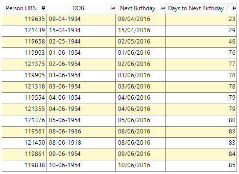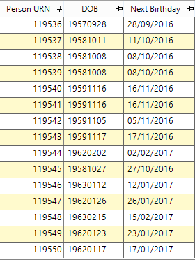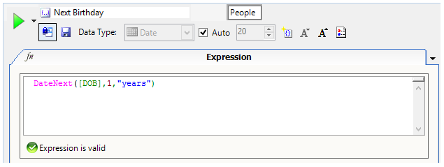 Mit einer sogenannten “Expression” kann in FastStats eine Variable beispielsweise namens “DOB (Date of Birth)“ angelegt werden. Über die Funktion „NextDate“ errechnet die Software den nächsten Geburtstag anhand des Geburtsdatums.